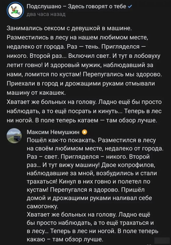 Подсмотренно. Надо-же было такое место для секса выбрать!