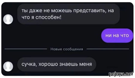 - Знаешь, какая разница между твоим членом и твоими шутками? - КАКАЯ??? - Над твоими шутками никто не смеется...