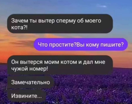 -Здравствуйте, вы папа Васи Петрова? -Да, МарьИванна, зачем вызвали меня в школу? -Я хотела поговорить о поведении вашего сына, вам нужно серьёзно заняться его воспитанием! -Да что случилось то?!? -Я загадала им загадку. Маленькое, серенькое, в половой щели живёт. И знаете что ответил ваш сын? -Что? -ХУЙ!!!! -да? А как правильно надо было ответить? -Мышка!!!!!! - Мышка?!? В пизде????? Оригинально! |