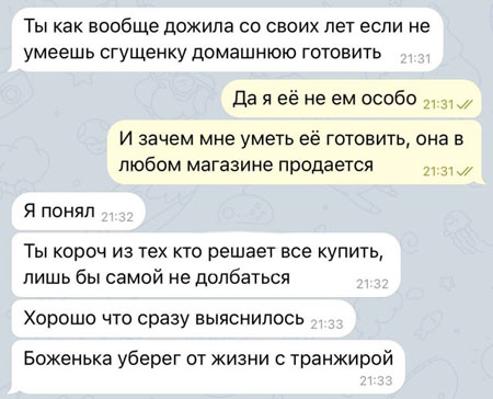- У меня к тебе деловое предложение: соберёшь мне шкаф? - Возможно. - Почему это "возможно"? - Ну, какая-то одностороння сделка получается. А что я получу взамен? - Я бы спросила, чего ты хочешь. Но, мне кажется, я уже догадываюсь, о чём ты. - Я непредсказуем! - Хорошо, и чего же ты хочешь? - Ежа.