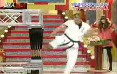 Пять бейсбольных бит ногой пополам.