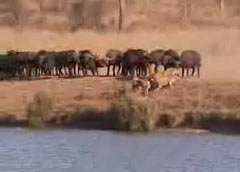 Свирепые буйволы разгоняют тигров