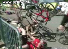 Массоввый завал на велогонках.