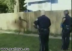 Голый нигер пытается свалить от полиции.