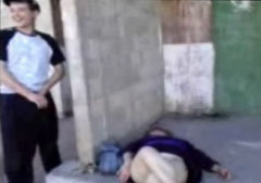 Обоссали пьяную тетку.