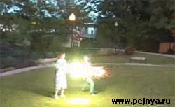 Взрыв петарды в руках.