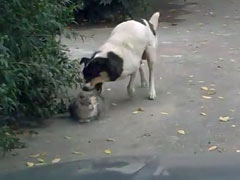 Необычная дружба кошки и собаки.