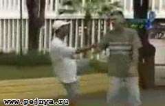 Прикольное видео. Баран сшибает видеооператора.