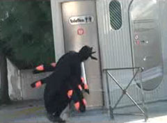 Обматали туалет с человеком находящимся внутри плёнкой